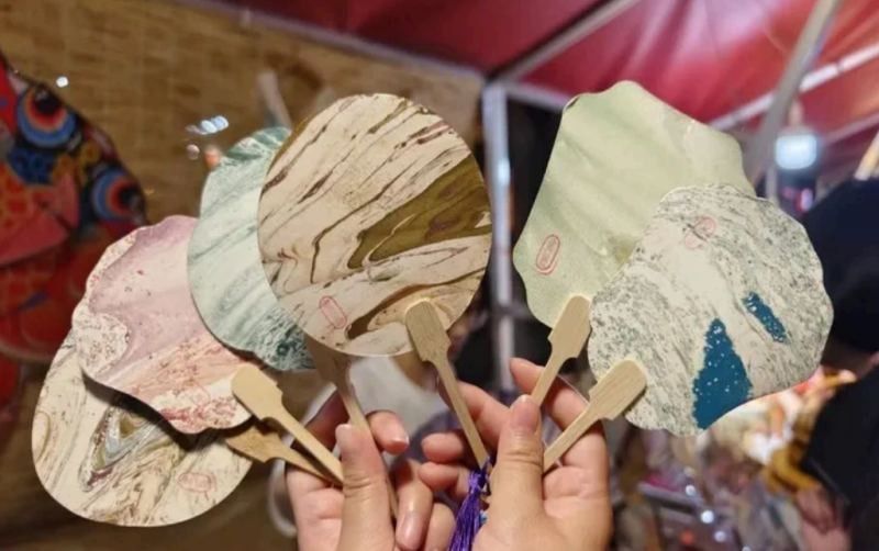 一桶清水、五颜六色的彩漆、绳子上一把把写意的扇子随风舞动……无论你走进哪个景区,都能看到最新“出片神器”漆扇的身影。